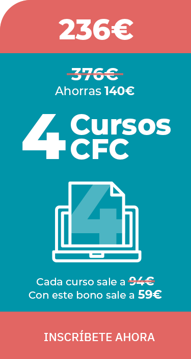 Cada uno de nuestros cursos tienen una media de más de 8 créditos CFC, factor muy relevante a la hora de conseguir el máximo de puntuación en oposiciones y bolsas de empleo, según las últimas publicaciones oficiales disponibles. Por ello, para que puedas llegar con las mayores garantías y puntuación posible a la hora de presentar tus méritos, selecciona uno de los bonos de 2, 3 o 4 cursos y comienza ya a sumar un gran número de puntos para conseguir tu plaza. Es tu momento.